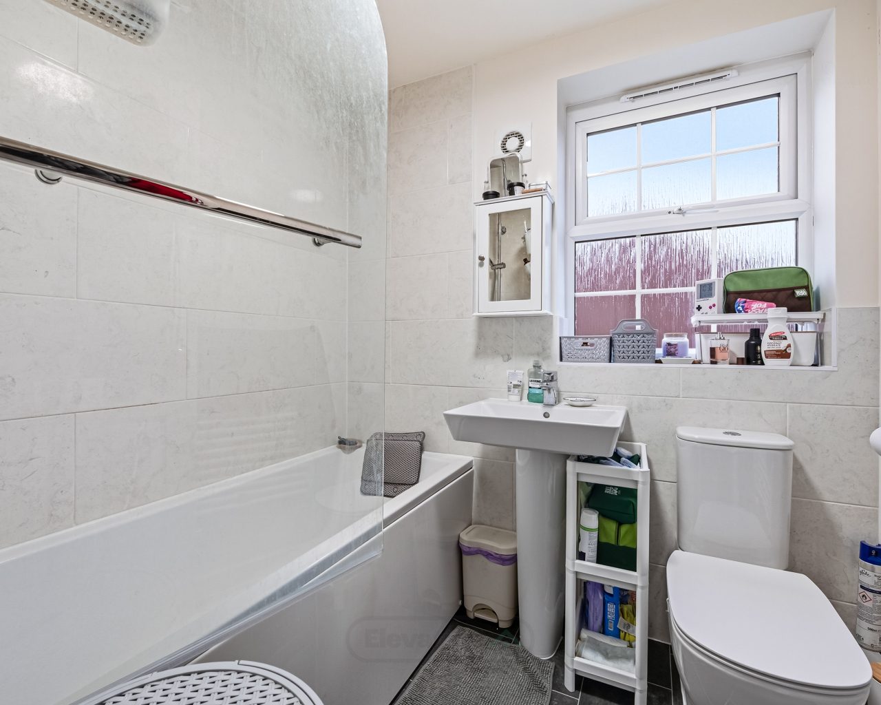 The contemporary kitchen is fitted with selected integrated appliances and features a stylish breakfast bar, creating a sociable and practical space for everyday living. Double French doors lead directly from the kitchen into a well-maintained rear garden, perfect for outdoor enjoyment.