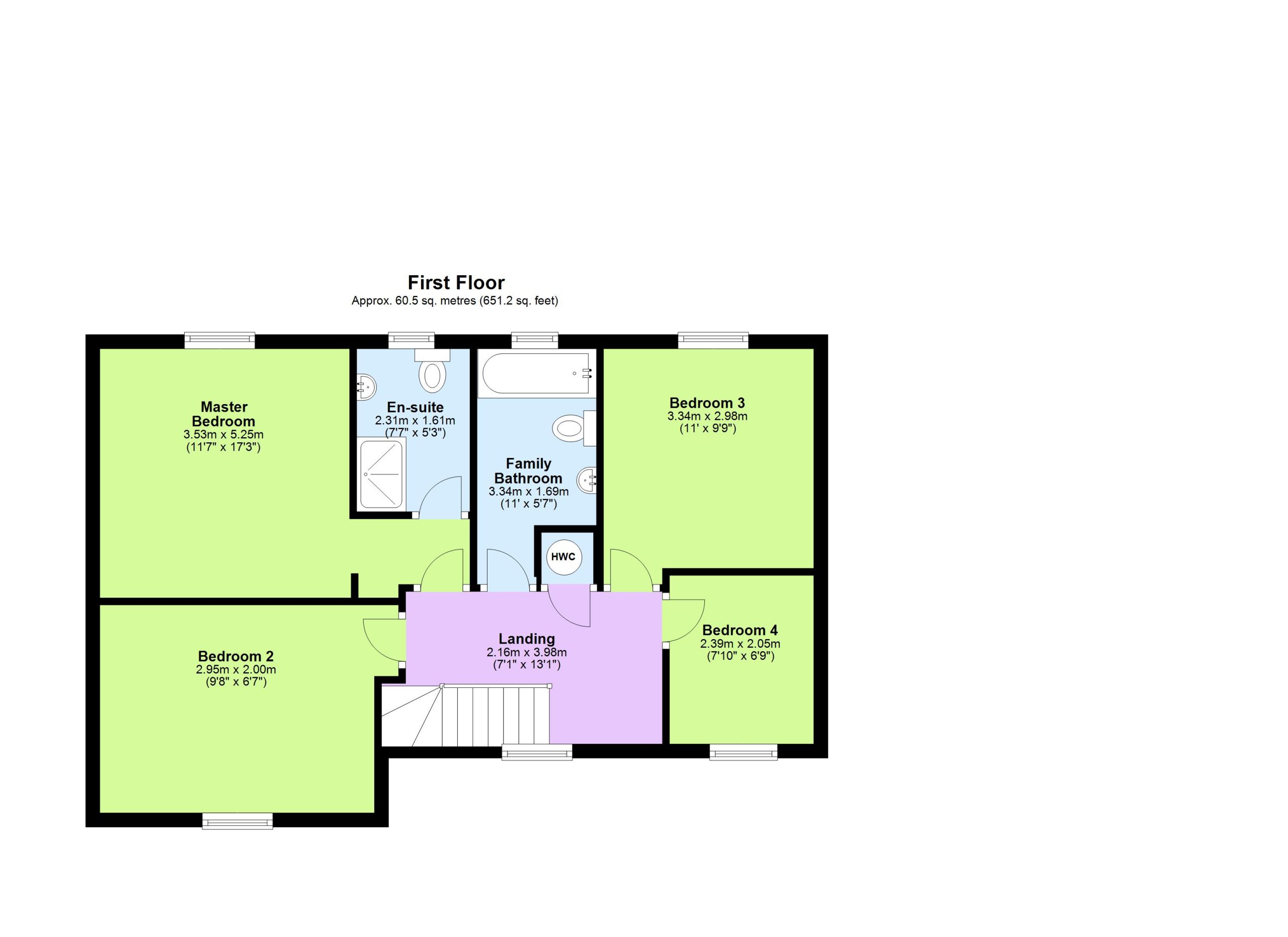 On the first floor is the large open landing area giving access to the master bedroom with en-suite shower room and a further three double bedrooms and the family bathroom.