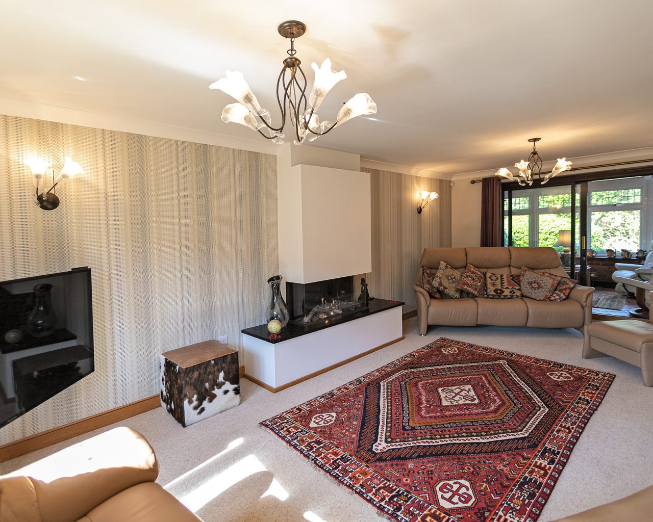 The ground floor comprises of a large entrance hall leading to a dual aspect living room with a new modern gas fire place, large kitchen diner which has been refitted leading out to a large consevatory and downstairs cloakroom which has been modernised.