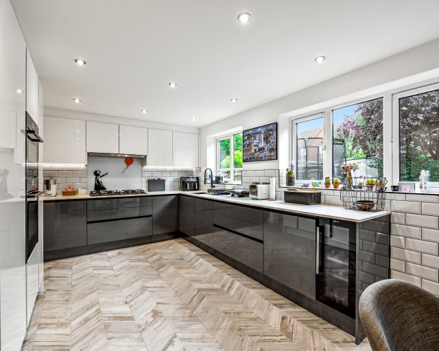 The ground floor features a newly fitted, generously sized kitchen/diner – perfect for modern family life and entertaining – complete with a separate utility room for added convenience. A bright and airy living room provides plenty of space to relax, while a downstairs cloakroom adds to the practicality of the layout.