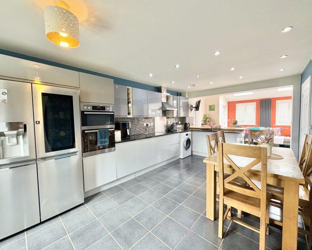Positioned within one of the area's most desirable residential enclaves, this extended four-bedroom family home presents an outstanding opportunity for those seeking a refined balance of contemporary living and everyday practicality. The focal point of the property is an impressive open-plan kitchen, dining, and family area. Designed to the highest standard, this expansive space is bathed in natural light and offers seamless access to the rear garden—an ideal setting for both sophisticated entertaining and relaxed family living.