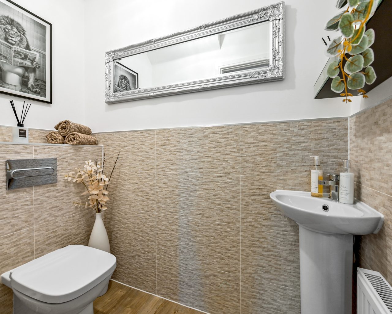 - Beautifully landscaped rear garden with two stylish patio areas – perfect for outdoor dining and entertaining