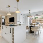 The striking entrance hall creates an immediate impact and leads to a well-balanced ground floor, featuring a private study, to the front of the home is a formal dining room, enhanced by a bay window, and a private living room—ideal for both entertaining and everyday family life. At the heart of the home lies a stunning open-plan kitchen, living, and dining space. Designed for modern living, the kitchen offers extensive storage, sleek cabinetry, and a central island that naturally becomes the focal point of the room. French doors open onto the patio and garden, creating a seamless connection between indoor and outdoor living.