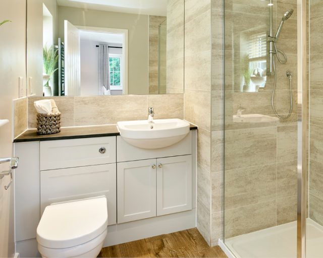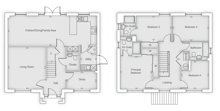 Upstairs, all four bedrooms are spacious doubles. The principal bedroom and bedroom two both benefit from fitted wardrobes and their own en-suite shower rooms, while bedrooms three and four share a beautifully appointed family bathroom, designed with both style and practicality in mind.