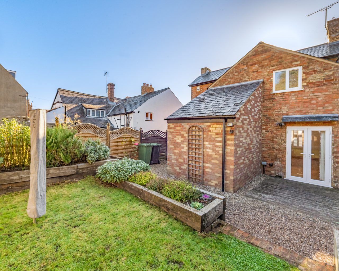 Outside, the property boasts an enclosed part-walled garden with decking, raised borders, and a timber summer house—ideal for enjoying the warmer months. To the rear, a single detached garage offers secure parking and additional storage.