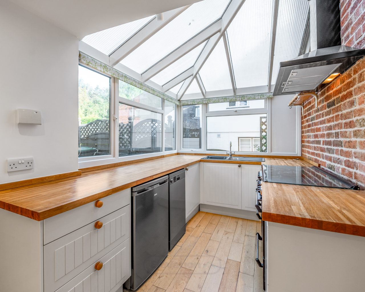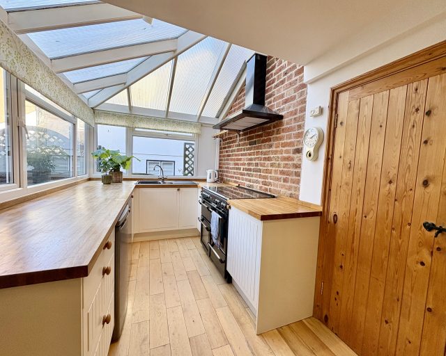 Stepping inside, the entrance hall leads to a cosy lounge featuring a log-burner fireplace with hearth, the perfect spot for relaxing evenings. A separate reception room offers space for home working, while the generous dining area flows seamlessly into an orangery-style cottage kitchen, creating a wonderful setting for family meals and entertaining.