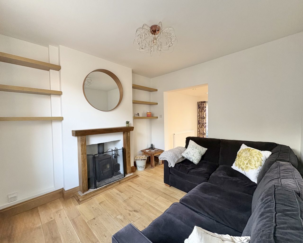 - Cosy lounge with feature log-burner fireplace and hearth