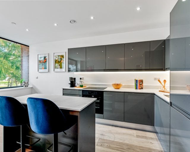 The interiors boast a superior specification throughout, including sleek, fully integrated kitchens appliances, high-quality wood flooring, elegantly tiled bathrooms, and secure video entry systems.